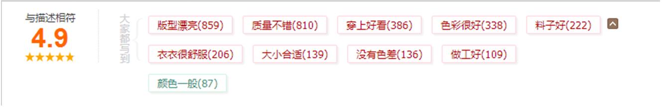 上图是截图说明天猫标签,根据买家的评价,帮你做好标签归类,红色表示是好的方面,绿色表示的是不好的方面,相信红色和绿色分别代表什么不用多做解释了吧。在这里告诉大家一个小干货,不要看干货小,却是很多商家和运营朋友们都不知道的哦。标签最多会自动出现7个,当你这7个里面有一个绿色的时候,可以通过一些方法将绿色的顶下去,将红色的顶上来。在这里需要注意的一点是:红色出现的肯定要是你评价好的一面哦,至于通过什么方法,我就不说了,因为方法真的有很多,不过建议还是选择正当的方法哦,毕竟我们是依附与这个平台生存的,所以规矩还是要遵守的。