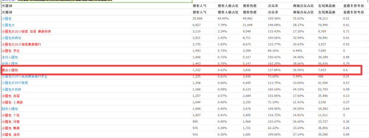 对比上图是不是发现,原来小圆包找个词才符合我们的宝贝?其他的产品是不是都和我们的不像?现在我们知道该选择哪个词为我们的核心词了吗?我们要知道,就算一个词数据再好,你产品不像,他只能增加你的跳失率,还影响到转化。