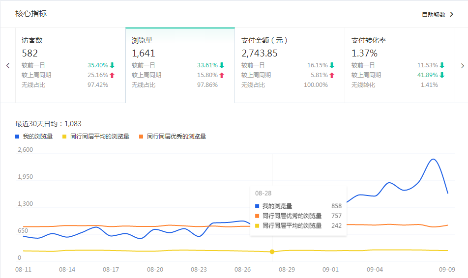 关于DSR评分,在分享的时候说过,主要看趋势是不是会持续下降还是持续上升,持续下降,店铺综合质量得分降权;反之,则综合质量得分上升。为了能够在双十一到来的时候得到更多的扶植,操作建议有两个: